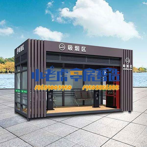 吸煙亭生產需要采用全阻燃材料,亭內各種配置如照明燈、電源插座、電控箱、煙灰桶,通風風扇等等一